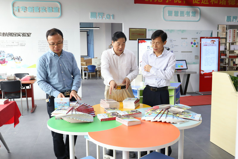 4月8日上午中共广东省委宣传部副部长杜新山、专委会谢晗理事长和广东外语外贸大学图书馆孔晓明馆长一行50多人莅临广东才华文化发展有限公司进行调研活动及培训,杜新山副部长、谢晗理事长和孔晓明馆长由广东才华文华发展有限公司董事长聂道良陪同一起参观了公司一楼图书及教育设备展厅和二楼图书书库,并详细了解馆藏图书情况及教育设备使用,对我司工作给予高度的信任及认可!